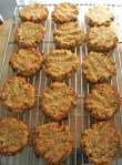 ** If you are using the pork rind “breading” — dump the rind crumbs onto a plate in a thin layer. Roll each ball in the rinds to get a very thin coating , then dip fully into the egg, then back in for another even roll through the crumbs and place back onto the cookie sheet.